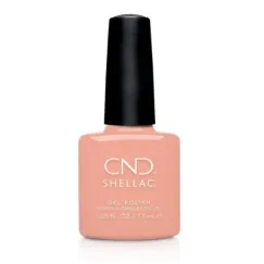 Ημιμόνιμο βερνίκι νυχιών CND Shellac σε απαλή ροζ/ροδακινί απόχρωση.
