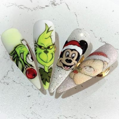 Η nail artist Maria Corke δημιούργησε με πολύ μεράκι και αρκετές αποχρώσεις νυχιών της CND, μια σειρά από σχέδια νυχιών με μερικούς από τους πιο λατρεμένους μας Χριστουγεννιάτικους χαρακτήρες: Santa Claus, The Grinch, The Forever Friends Bear και φυσικά τον Mickey Mouse!