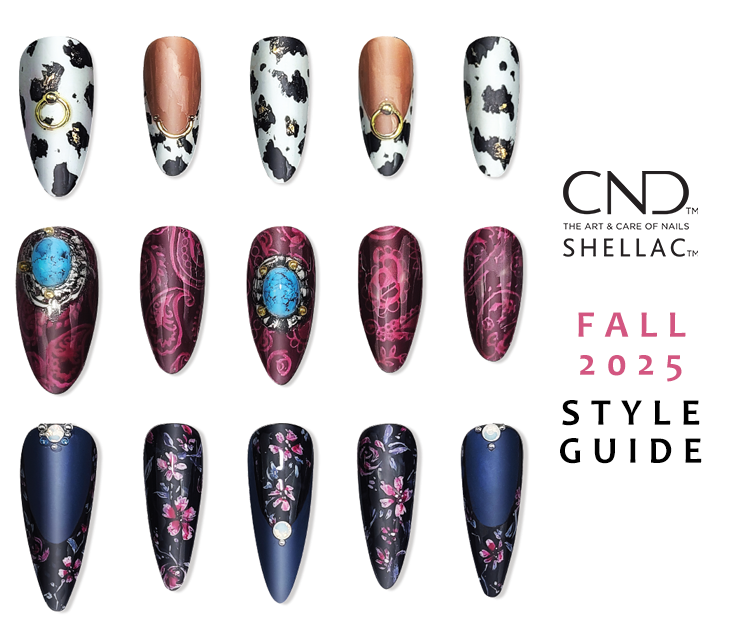 Από έντονο cow-girl glam με ουδέτερα χρώματα που μπορούν να αναβαθμίσουν οποιοδήποτε outfit, έως dark αλλά δυναμικά λουλούδια, και νοσταλγικά σχέδια παλιών υφασμάτων που μοιάζουν με κέντημα, είμαστε ενθουσιασμένοι που δημιουργήσαμε αυτά τα nail look με τις υπάρχουσες συναρπαστικές αποχρώσεις Shellac της CND™.