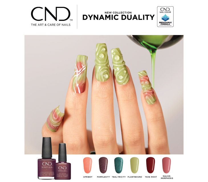 Διαθέσιμη σε CND™ SHELLAC™ Gel Polish και CND™ VINYLUX™ Long Wear Polish, η χρωματική παλέτα της συλλογής Dynamic Duality συνοδεύει τέλεια τη φθινοπωρινή σεζόν και δημιουργεί μια οπτικά εντυπωσιακή αντίθεση σε ατελείωτα σχέδια νυχιών.