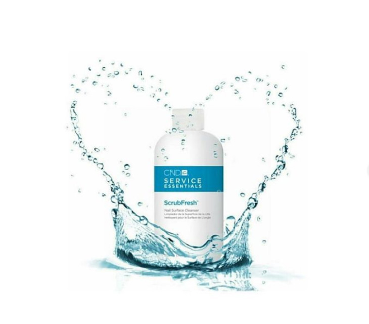 Η CND διαθέτει το υγρό Scrubfresh για τον καθαρισμό και την προσωρινή αφυδάτωση του νυχιού. Μπορείτε να το χρησιμοποιήσετε με ένα σφουγγαράκι που δεν αφήνει χνούδι. Σπρώχνετε τα επωνύχια προς τα πίσω με ένα cuticle pusher και τρίβετε όλη την επιφάνεια του φυσικού νυχιού με CND Scrubfresh, ακριβώς σα να αφαιρείτε ένα κόκκινο βερνίκι νυχιών. Έπειτα ξεκινάτε την εφαρμογή σας!