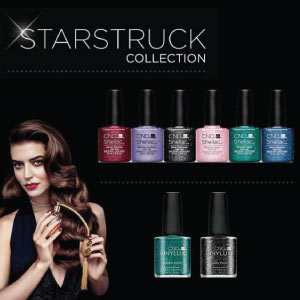 Αιχμαλωτίζοντας την κομψότητα του Χόλιγουντ, οι νέες αποχρώσεις της εορταστικής σειράς "Starstruck" της CND χαρακτηρίζονται από 6 εκθαμβωτικά χρώματα σαν κοσμήματα, που ενσωματώνουν την αίγλη του κόκκινου χαλιού. Είναι διαθέσιμα σε SHELLAC™, με δύο από τις αποχρώσεις (Emerald Lights και Dark Diamond) διαθέσιμες και σε VINYLUX™.