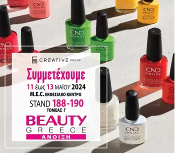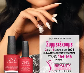 "BEAUTY GREECE - ΧΕΙΜΩΝΑΣ 11-13/11 2023" Σας περιμένουμε και αυτόν το Χειμώνα στη μεγαλύτερη και σημαντικότερη κλαδική Έκθεση Επαγγελματικών Προϊόντων & Υπηρεσιών Ομορφιάς ! CREATIVE GROUP: ΤΟΜΕΑΣ Γ’ , περίπτερο #188-190 Με τις υπέροχες αποχρώσεις χρωμάτων νυχιών της CND στο αυθεντικό ημι-μόνιμο βερνίκι...