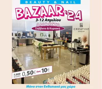 ΜΕΓΑΛΟ BAZAAR ΟΜΟΡΦΙΑΣ BEAUTY-NAIL BAZAAR από την CREATIVE GROUP! Βιαστείτε για να προλάβετε τα τελευταία τεμάχια από τις αγαπημένες σας σειρές που έχουν καταργηθεί (Creative Play gel & βερνίκια, IBD ημιμόνιμα, μακιγιάζ, nail art accessories κ.α.), σε τιμές ΒΑΖΑΑR από 0,50€ έως 10,00€. Σας περιμένουμε στον εκθεσιακό μας χώρο: 19ο...