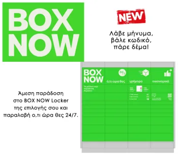 Δε χρειάζεται πια να περιμένετε για να λάβετε το δέμα σας, σας περιμένει αυτό! Λάβετε μήνυμα, βάλτε κωδικό, πάρτε δέμα! Άμεση παράδοση στο BOX NOW Locker της επιλογής σας και παραλαβή ό,τι ώρα θελετε 24/7. Πώς λειτουργεί; 1. Επιλέξτε την BoxNow ως τρόπο παράδοσης στο check-out και πληρωμή με πιστωτική/χρεωστική κάρτα ή IRIS. 2. Επιλέξτε το...