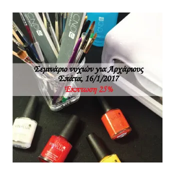 Επαγγελματικό Σεμινάριο Νυχιών για Αρχάριους Το πρόγραμμα που δίνει τις σωστές και απαραίτητες βάσεις εκπαίδευσης για τον αρχάριο. Θεωρητικά και πρακτικά μαθήματα πάνω σε τεχνικές που εφαρμόζει ο Nail artist, πάντα ενημερωμένο με όλες τις τελευταίες εξελίξεις. Κλείστε τώρα τη θέση σας...