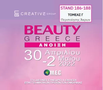 "BEAUTY GREECE - ΑΝΟΙΞΗ 30/04 - 02/05 2022" Σας περιμένουμε αυτήν την Άνοιξη στη μεγαλύτερη και σημαντικότερη κλαδική Έκθεση Επαγγελματικών Προϊόντων & Υπηρεσιών Ομορφιάς ! CREATIVE GROUP: ΤΟΜΕΑΣ Γ’ , περίπτερο #186-188 Με τις υπέροχες αποχρώσεις χρωμάτων νυχιών της CND στο αυθεντικό μόνιμο βερνίκι νυχιών CND...