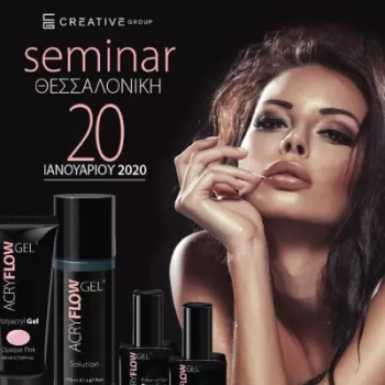 Σεμινάριο Αcryflow® Gel - 20 Iανουαρίου, Θεσσαλονίκη, κτήριο ΧΑΝΘ, 3ος όροφος Μυηθείτε από την Technical Educator της Creative Group , Elena Lyashenko, στην τεχνική εφαρμογής της Πλέον Εξελιγμένης Φόρμουλας επιμήκυνσης φυσικού νυχιού, το AcryFlow Gel! Διάρκεια : 5 ώρες (10 π.μ. έως 13 μ.μ.) Κόστος εκπαίδευσης...