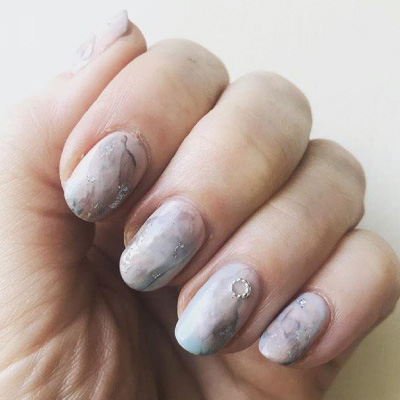 Με εφέ μαρμάρου και έναν συνδυασμό χρωμάτων, κάναμε τα νύχια μας να μοιάζουν με ένα ρομαντικό καμβά επαγγελματία.