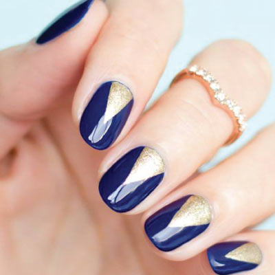 Το συγκεκριμένο nail art είναι όμορφο και διαφορετικό, γιατί έχει ως βασικό χρώμα του το μπλε, που είναι πιο σπάνια επιλογή γι' αυτές τις μέρες, αλλά και το χρυσό που προσθέτει μια glamorous πινελιά.