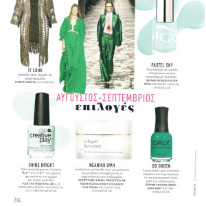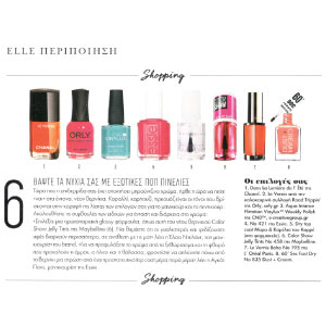 Δείτε την παρουσίαση της νέας σειράς βερνικιών νυχιών CND Creative Play στο περασμένο τεύχος Αυγούστου - Σεπτεμβρίου 2016 του περιοδικού Elle. Επίσης, στη στήλη "ELLE Περιποίηση" θα βρείτε τις προτάσεις του περιοδικού σε βερνίκια νυχιών, με το χρώμα Aqua-intance του Vinylux Weekly Polish να ξεχωρίζει και να κλέβει τις εντυπώσεις.