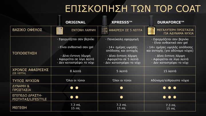 Αποτελεί το τελικό στάδιο μιας υπηρεσίας χρώματος CND Shellac, σφραγίζοντας και προστατεύοντας τη στρώση χρώματος του CND Shellac για μεγάλη διάρκεια και έντονη γυαλάδα.