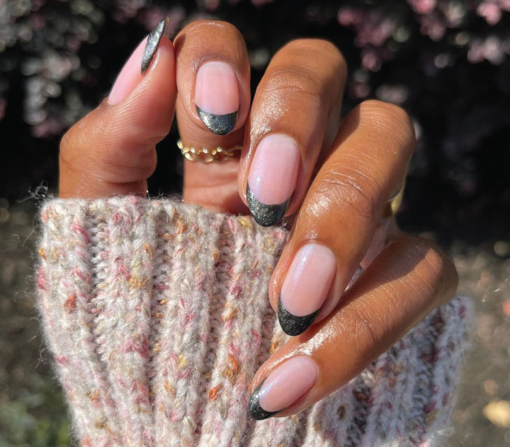 Για το Gunmetal μανικιούρ, όπως το ονομάζουν, έχει επιλεχθεί το ιριδίζον ροζ Negligee, για εξτρά θηλυκότητα και διακριτικότητα, και το Powerful Hematite, το σκούρο ανθρακί μεταλλικό για τη γραμμή του γαλλικού. Και οι δύο αποχρώσεις νυχιών είναι αγαπημένες και μας χαρίζουν ένα άψογο αποτέλεσμα στο συνδυασμό τους.
