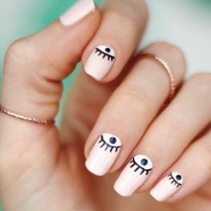 How to: Βάψε τα νύχια σου με το αγαπημένα σου nude βερνίκι νυχιών. Έπειτα, με τη βοήθεια λεπτών πινέλων nail art σχημάτισε με μαύρο χρώμα το περίγραμμα σχεδιάζοντας το μάτι. Γέμισε τον κύκλο με λευκό χρώμα και ολοκλήρωσε με μια γαλάζια βούλα. Επιπλέον πρόσθεσε και τις βλεφαρίδες που μας αρέσουν πολύ και δίνουν μια παιχνιδιάρικη και απόλυτα κοριτσίστικη διάθεση.