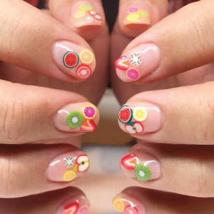 Ορισμένοι λάτρεις του nail art έχουν διακοσμήσει τα νύχια τους με ένα μόνο είδος φρούτου, ενώ άλλοι έχουν επιλέξει ένα πλήρες look "φρουτοσαλάτας", με διαφορετικό σχεδιασμό φρούτων να κοσμεί κάθε δάκτυλο!