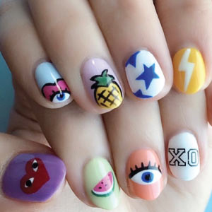 Αυτοκόλλητα νυχιών, στάμπες ή decals σε διαφορετικά σχήματα ροδάκινου, καρπουζιού, μπανάνας, ανανά ή φράουλας, είναι μόνο μερικά από τα φρουτώδη τεχνάσματα που δίνουν στα νύχια ένα ζωηρό, πικάντικο look!