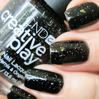 Για εφαρμογή με βερνίκια της σειράς Creative play μπορείτε να χρησιμοποιήσετε μετά το Creative Play Base Coat το Nocturne it up (μαύρο ημι-διαφανές με πολύχρωμο glitter) και να ολοκληρώσετε την εφαρμογή με το δικό του top coat.