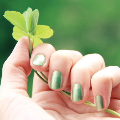 Γνωρίζετε αυτή την ιστορία για το δοχείο με χρυσό στο τέλος του ουράνιου τόξου; Αυτό το look αποτελεί μια εναλλακτική προσέγγιση σε αυτή την ιρλανδική λαϊκή παράδοση. Βάψτε όλα τα νύχια εκτός από ένα με το αγαπημένο σας πράσινο βερνίκι νυχιών, και μετά γεμίστε το ένα νύχι που περισσεύει πολλή λάμψη και γκλίτερ. Επιλέξτε χοντροκομμένο γκλίτερ, για να μοιάζει με στοιβαγμένα χρυσά νομίσματα!