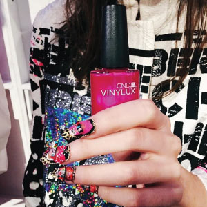 Κάποια από τα πιο αγαπημένα μας look ήταν: το 'Flock and Chain', με καυτά ροζ χνουδάτα pom-pom, συνδυασμένα στο άλλο χέρι με μεγαλοπρεπή μπλε ζαφείρια και αλυσίδες - το 'Flocked and Rocked', όπου στο ένα χέρι υπήρχαν πολύ έντονα χρώματα σε ματ υφή και στο άλλο πετράδια αιματίτη το ένα πάνω από το άλλο! Και τέλος, το ζωγραφισμένο στο χέρι πορτρέτο της Βασίλισσας, συνδυασμένο στο άλλο χέρι με, τι άλλο... ένα ζωγραφισμένο στο χέρι φύλλο μαριχουάνας, για ένα look που ονομάστηκε 'Cannabis Queen'. Ανάγλυφα σχέδια, ζωγραφιές, μωσαϊκά και πολύτιμες ώρες καλλιτεχνικής δημιουργίας αφιερώθηκαν από τη CND σε ένα σπουδαίο event με τον αγαπημένο μας πρωτοπόρο του στυλ, Johnson Hartig! Λατρεύουμε την Libertine!