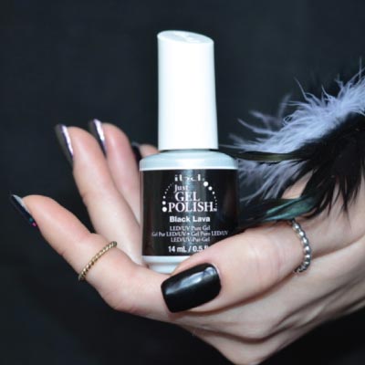 Το Ibd Just Gel Polish Black lava είναι ένα καθαρό μαύρο χρώμα μόνιμου βερνικιού πλούσιο σε χρωστικές, τόσο πολύ ώστε να μπορεί να τοποθετηθεί και σε 1 παχιά στρώση.