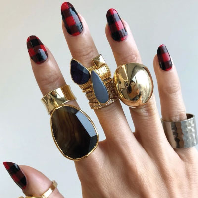Αν οι προτιμήσεις σας στο καρό μοτίβο τείνουν προς κάτι πιο λιτό, η απλούστερη εκδοχή στην παραπάνω φωτογραφία με ευρύτερες λωρίδες και μόνο δύο χρώματα νυχιών είναι η κατάλληλη φθινοπωρινή επιλογή για εσάς. Και δεν χρειάζεται να φορέσετε όλα τα ωραιότερα δαχτυλίδια σας το ένα πάνω από το άλλο, για να κάνετε αυτό το μανικιούρ να φανεί cool (αν και σίγουρα δεν βλάπτει!).