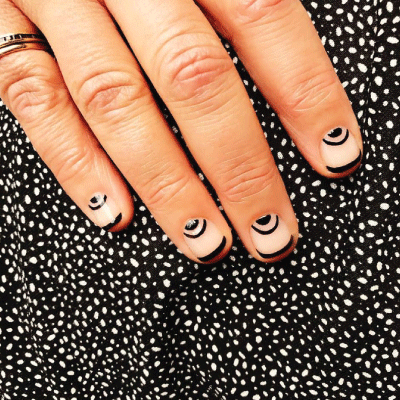 Το nail art που βλέπετε στην φωτογραφία είναι η λύση για να συνδυάσουμε και τα κοντά περιποημένα νύχια μας και το αγαπημένο μας μαύρο χρώμα, το Blackpool Vinylux weekly polish, έτσι ώστε να μην λείπει τίποτα από το πιο stylish χειμερινό μας look.