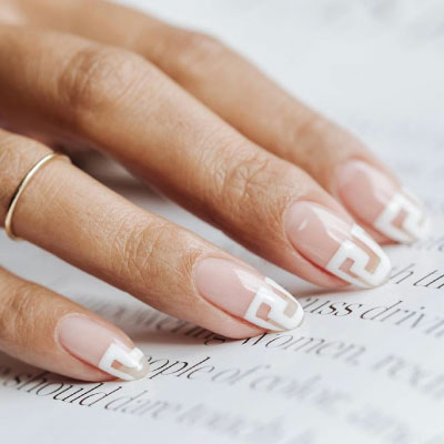 Το nail art με τους Αρχαίους Ελληνικούς μαιάνδρους δημιουργήθηκε από τους nail artists ενός γνωστού Hair & Nail studio του Λονδίνου (DryBy), που συνεργάζεται με τη CND και χρησιμοποιεί τα προϊόντα νυχιών της. Η βάση για το σχέδιο ήταν διάφανη (CND Shellac Clearly Pink) και οι μαίανδροι δημιουργήθηκαν με το χέρι, με τις αποχρώσεις CND Shellac Black Pool και CND Shellac Studio White.