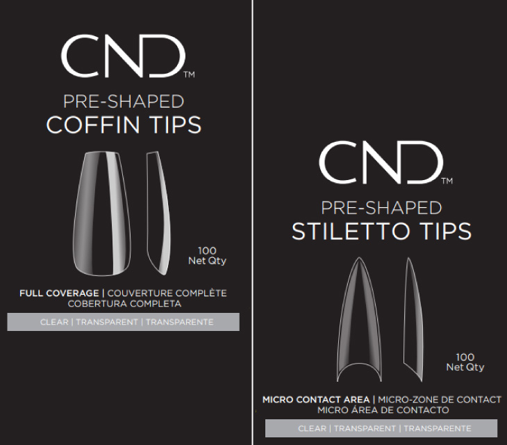 Δημιουργήστε άψογα τεχνητά νύχια σε σχήμα coffin ή stiletto, σε χρόνο μηδέν και χωρίς κόπο! Με τα νέα CND Clear Pre-Shaped Coffin και Stiletto Nail Tips, θα δημιουργήσετε τολμηρά νύχια που θα λατρέψουν οι πελάτισσες σας!
