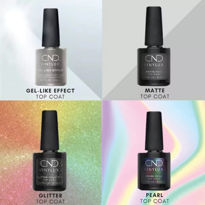 Και τα 4 αυτά top coats συνδυάζονται άψογα με τα βερνίκια CND Vinylux καθώς δεν επηρεάζουν καθόλου την αντοχή του βερνικιού και η φόρμουλά τους είναι απόλυτα ασφαλής, καθώς είναι 7-Free (δεν περιέχουν φορμαλδεΰδη, τολουένη, DBP, ρητίνη φορμαλδεΰδης, κάμφορα, ξυλόλιο ή MEK).