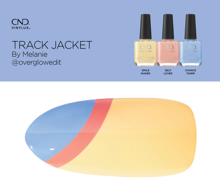 Ολοκαίνουργιο ανοιξιάτικο σχέδιο νυχιών με την ονομασία Track Jacket, με αποχρώσεις από τη νέα συλλογή βερνικιών νυχιών "The Colors of You" της CND για την Άνοιξη του 2021!