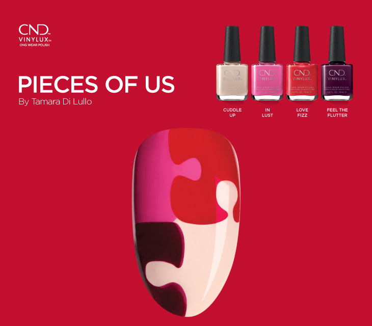 Ολοκαίνουργιο σχέδιο νυχιών με την ονομασία Pieces of Us, με αποχρώσεις του βερνικιού νυχιών μακράς διάρκειας VINYLUX από τη συλλογή βερνικιών νυχιών "Painted Love" της CND!
