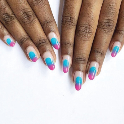 Το διαφορετικό και το ξεχωριστό αυτού του μανικιούρ εκτός από το συνδυασμό των αποχρώσεων του, έρχεται να σφραγιστεί με την τεχνική του καθώς πρόκειται για ένα ombre μάνικιουρ που αποτυπώνεται αλλιώς.