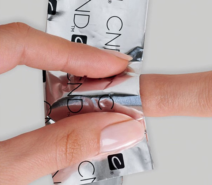 Βήμα 3: Αφαίρεση - Ξετυλίξτε προσεκτικά κάθε δάχτυλο και χρησιμοποιήστε μια απαλή περιστροφική κίνηση, για να αφαιρέσετε το μαλακό πλέον υλικό. Εάν χρειάζεται, μπορείτε να χρησιμοποιήσετε ένα ξυλάκι του μανικιούρ για να ανασηκώσετε το προϊόν, αλλά αποφύγετε την υπερβολική δύναμη ώστε να μην κάνετε ζημιά στα φυσικά νύχια.