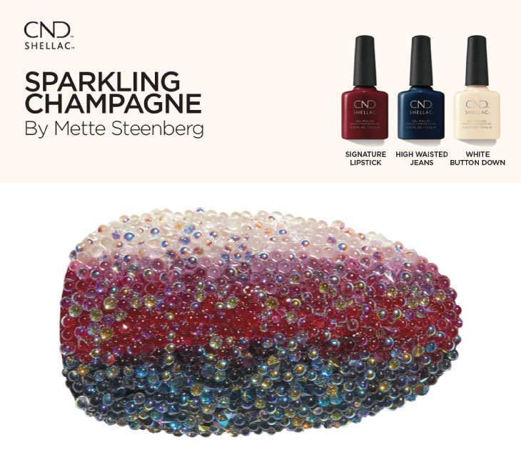 Ολοκαίνουργιο εορταστικό σχέδιο νυχιών με την ονομασία Sparkling Champagne, με αποχρώσεις από τη νέα holiday συλλογή βερνικιών νυχιών "Party Ready" της CND για τις γιορτές του 2021!