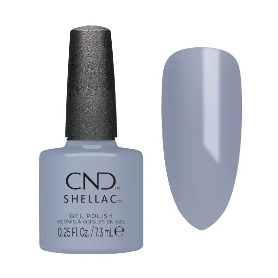 Ημιμόνιμο βερνίκι νυχιών CND Shellac σε απαλή μπλε απόχρωση με γκρι χροιά.