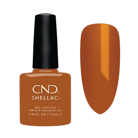 Ημιμόνιμο βερνίκι νυχιών CND Shellac σε καφέ της καραμέλας απόχρωση.