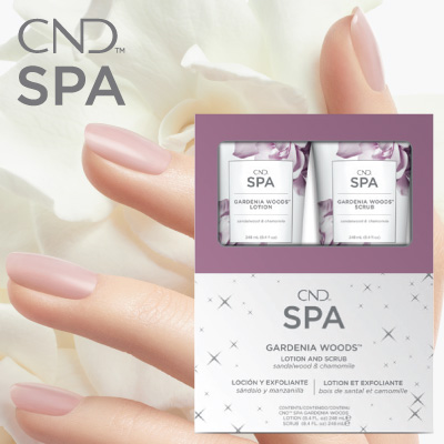 Οι θεραπείες σπα της πολυτελούς σειράς CND Spa Gardenia Woods ενυδατώνουν και "ηρεμούν" την επιδερμίδα με ένα φυτικό μείγμα από καταπραϋντικό χαμομήλι και εξαγνιστικό σανδαλόξυλο.
