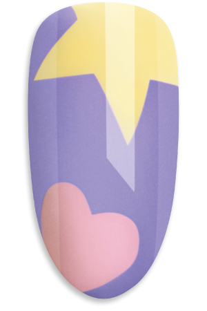 - Με ένα Stylus χαράξτε ένα σχήμα αστεριού στο επάνω μέρος, αποκαλύπτοντας από κάτω το Jellied, και ένα σχήμα καρδιάς στο κάτω μέρος αποκαλύπτοντας το Candied. Τελειποιήστε τα σχήματα με ένα Oval πινέλο τζελ #6 εμποτισμένο με καθαρό οινόπνευμα 99% και πολυμερίστε για 1 λεπτό στη CND LED Lamp.