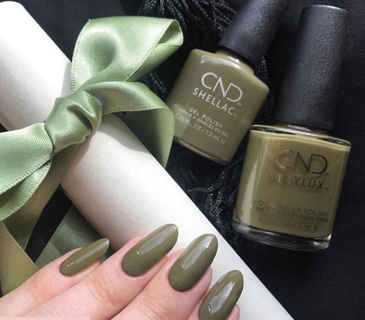 Ποιο είναι λοιπόν το γήινο χρώμα νυχιών που θα λατρέψετε να φοράτε αυτό το φθινόπωρο; Μα φυσικά το πράσινο, που θα φορεθεί πολύ και φέτος κυρίως στις αποχρώσεις του λαδί. Η CND μας χάρισε την υπέροχη απόχρωση Cap & Gown στο αυθεντικό ημιμόνιμο βερνίκι νυχιών CND Shellac και στο βερνίκι μακράς διάρκειας CND Vinylux - ένα "γεμάτο" πράσινο-λαδί σε κρεμώδη υφή, που θα απογειώσει το φθινοπωρινό look σας και θα σας κάνει να ξεχωρίζετε!