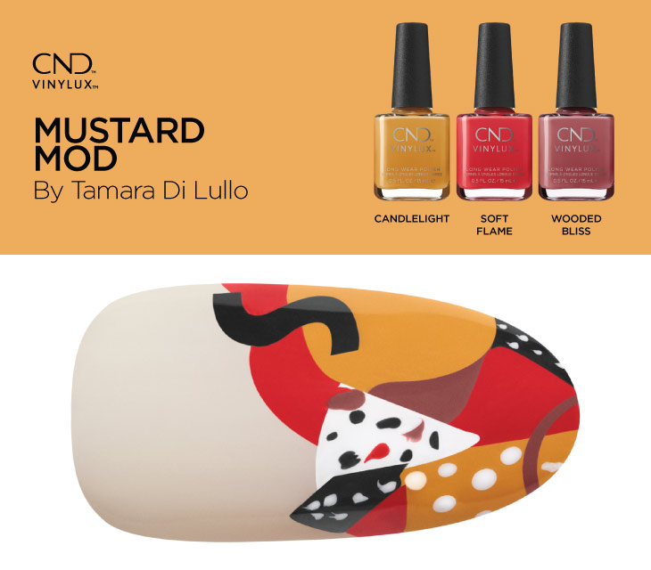 Ολοκαίνουργιο σχέδιο νυχιών με την ονομασία Mustard Mod, με αποχρώσεις από τη νέα συλλογή βερνικιών νυχιών "Wild Romantics" της CND για το Φθινόπωρο του 2021!