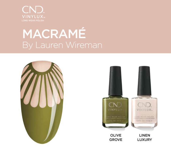 Ολοκαίνουργιο σχέδιο νυχιών με την ονομασία Macrame, με αποχρώσεις βερνικιών μακράς διαρκείας Vinylux από τη νέα συλλογή βερνικιών νυχιών "Mediterranean Dream" της CND για το Καλοκαίρι του 2022!