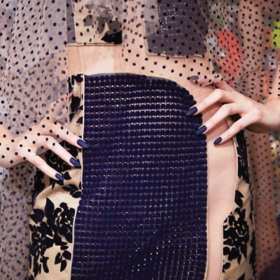 Στην παραπάνω φωτογραφία χρησιμοποιήθηκε για επίδειξη μόδας με ματ τελείωμα, που δημιουργήθηκε με το CND Shellac matte top coat.